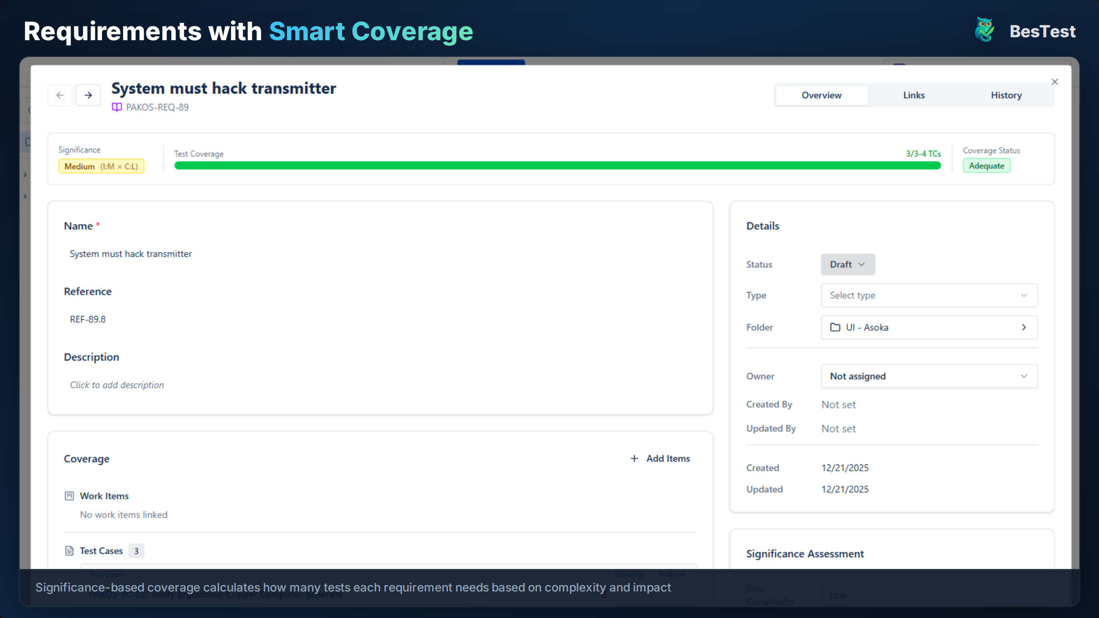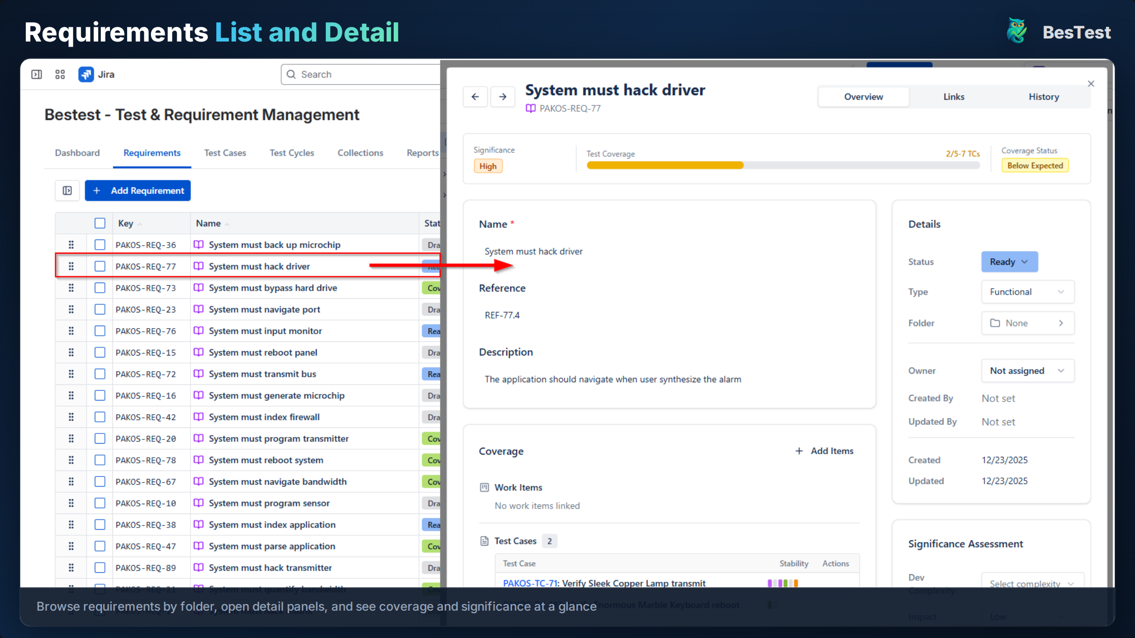 Each requirement in BesTest is a dedicated entity with structured fields: